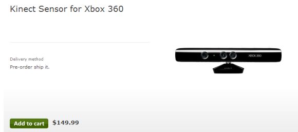 Apesar de Best Buy, GameStop, Walmart e Amazon já saberem a muito tempo que o Kinect iria custar US$ 150, por algum motivo a Microsoft não admitia isso. Mas agora é oficial e o item "Kinect Sensor for Xbox 360" já está listado e anunciado no próprio site da Microsoft pelo absurdo valor de US$ 149,99.